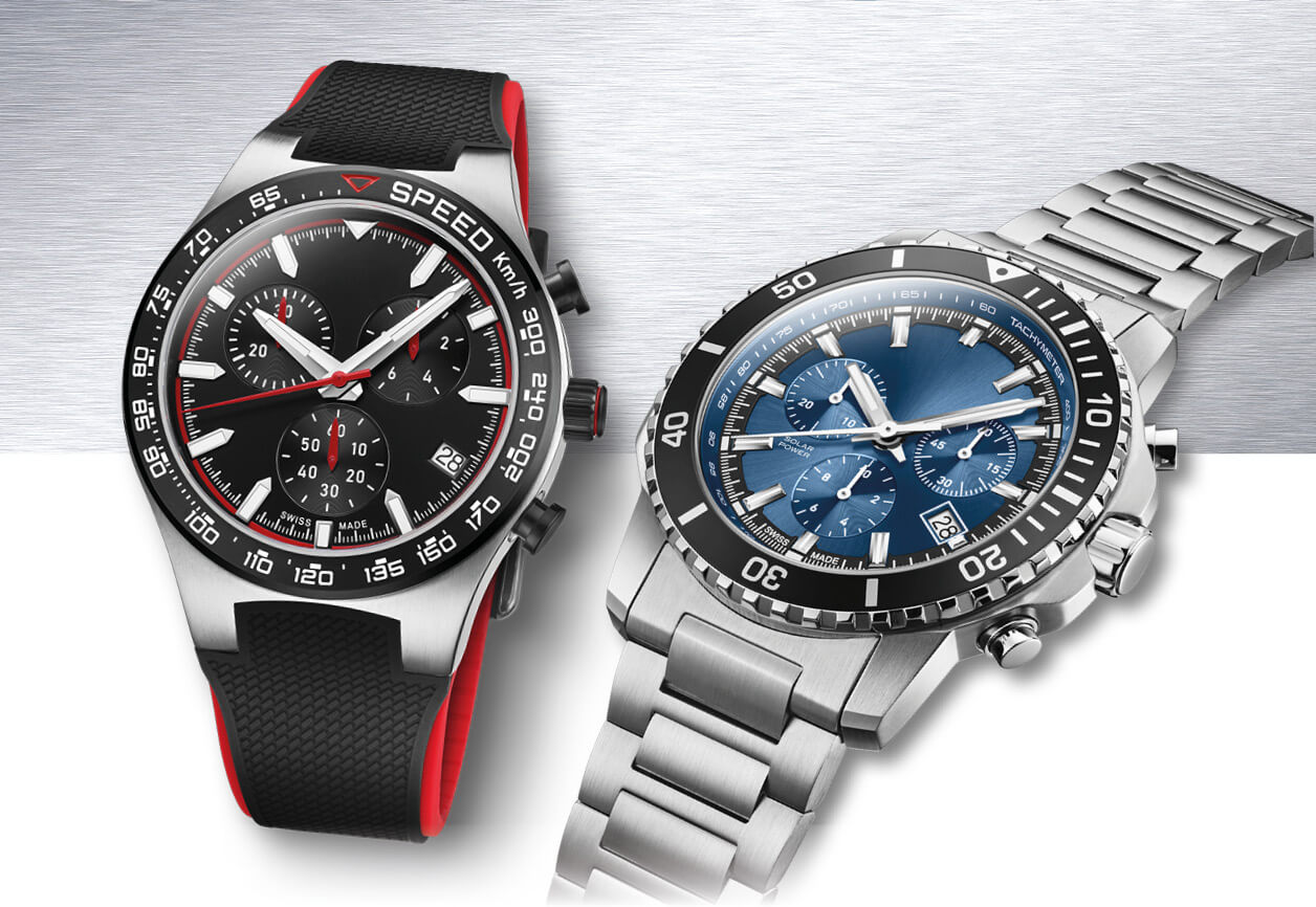 Basically, every man owns at least two watches that match the following looks: the elegant, fine look and the sporty, casual look. For the business outfit, where the perfectly fitting suit is used, a classic quartz or automatic watch for men with a stainless-steel bracelet works best. But even with a men’s watch with leather strap, combined with a suit and tie, a man is always on the stylish side. It doesn’t matter if it’s a silver watch, a gold watch or even a rose gold watch. For the city look in combination with a leather jacket or a casual shirt, you can then choose a chronograph men’s watch in your favourite colour. With the sporty models, there are almost no limits: Every colour and size are allowed. In summer, you’re always trendy with a men’s watch with leather or rubber wristband. Before deciding on the right men’s watch to represent your company or your brand, you should think about it and not decide on the first beautiful model. After all, the men’s watch is one of the few pieces of jewellery men wear. And who knows: perhaps the accessory will be the next heirloom of the family? Forget time and let yourself be inspired by our vast collection of men’s watches.